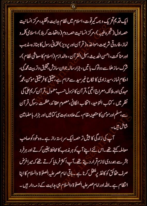 فرمانِ مولا علی علیہ السلام ۔ فَإِنَّا صَنَائِعُ رَبِّنَا وَالنَّاسُ بَعْدُ صَنَائِعُ لَنَا (صَنَائِعنَا) ۔ "لہٰذا ہم اللہ کی خاص صنعت ہیں اور اس صنعت کے بعد باقی تمام انسان ہماری (یا ہمارے لئے) صنعت ہیں" ۔ (نہج البلاغہ)